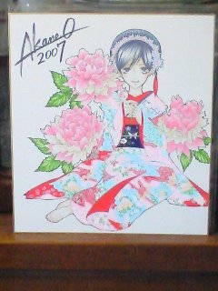 さてさて!昨日の予告どおり、今日は昨日の朝宅急便で届いた小椋アカネ先生の色紙をお披露目~☆★☆